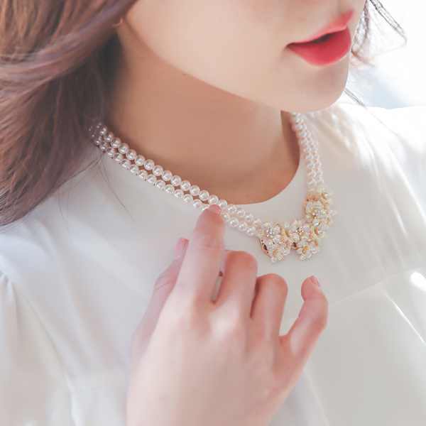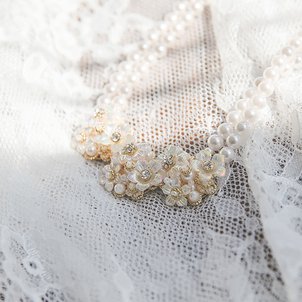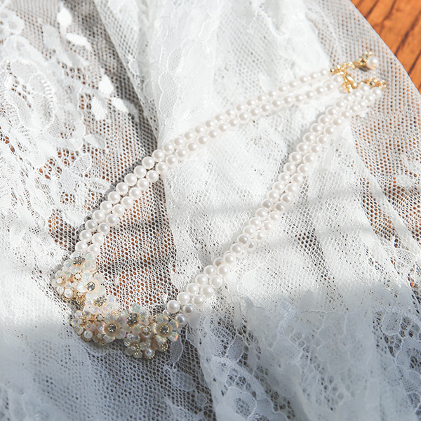 镭射 花纹 珍珠 项链