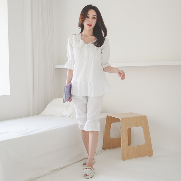 棉 蕾丝 荷叶 睡衣SET