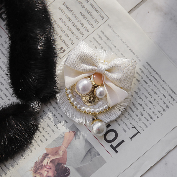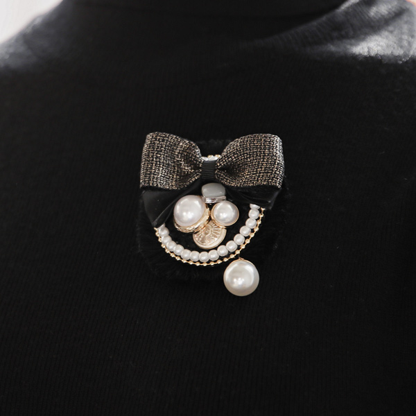 粗呢 蝴蝶结&珍珠 混合 胸针