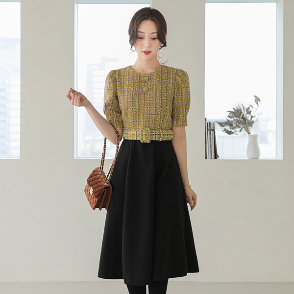 로맨틱함이 묻어나는 트위드 플레어 원피스