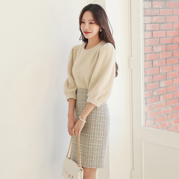 사랑스러운 밍크퍼 소재의 퍼프 블라우스