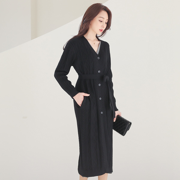 동일한 니트 소재의 벨트까지 더해져