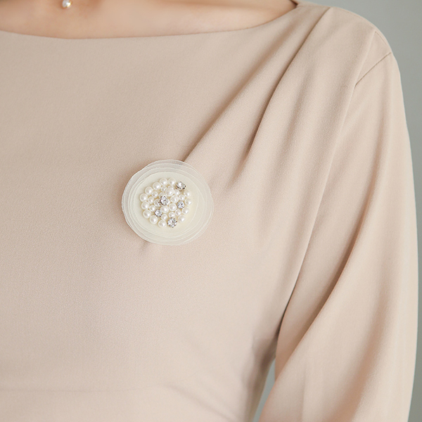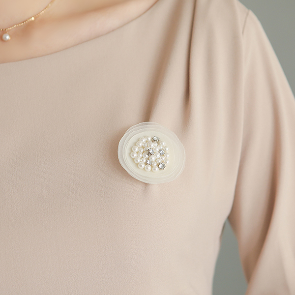 珍珠&镶钻 珠饰 层褶裙 胸针