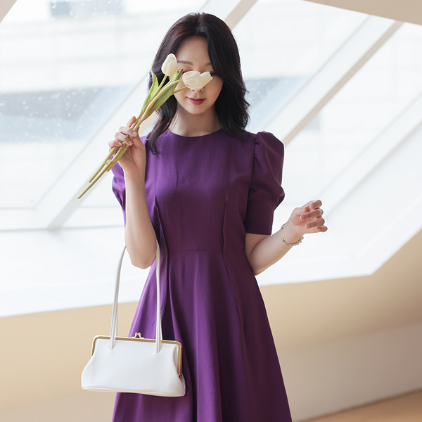 상큼한 컬러감이 돋보이는 퍼프소매 원피스에요