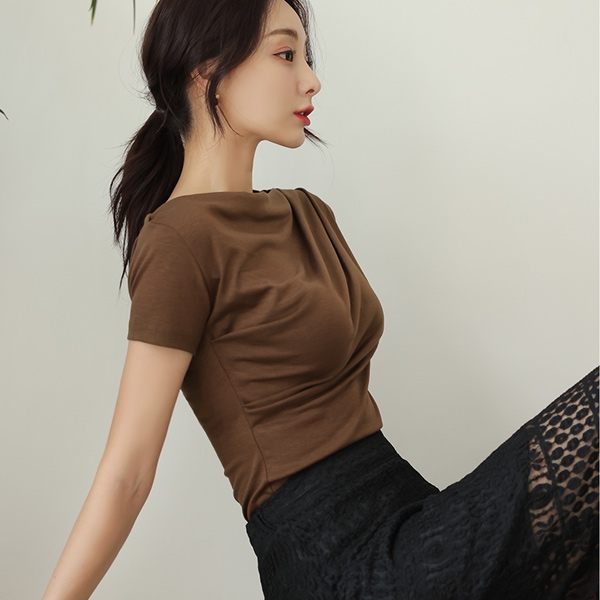 글램한 드레이핑 라인의 카울넥 티셔츠