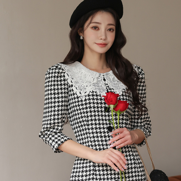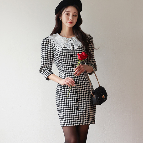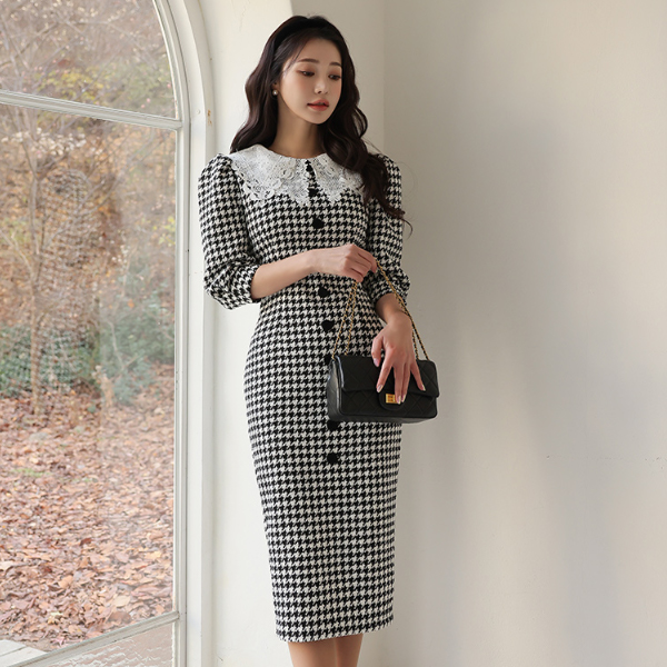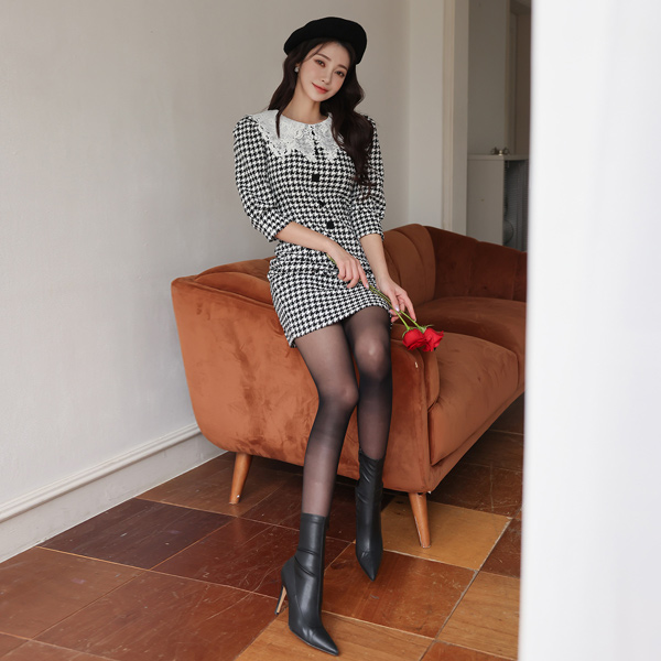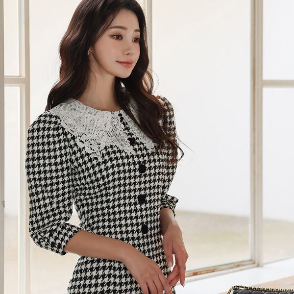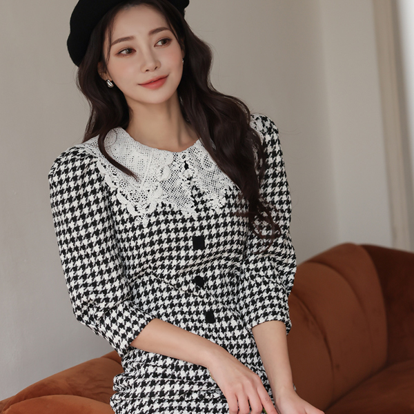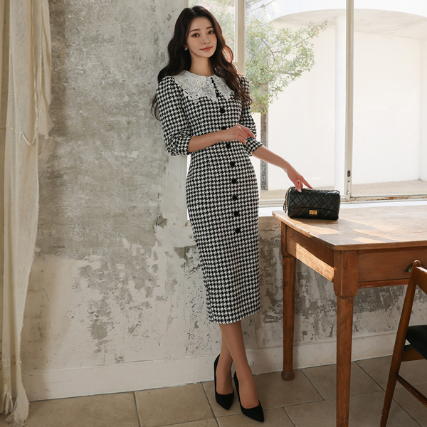 하운드 투스 체크 원피스