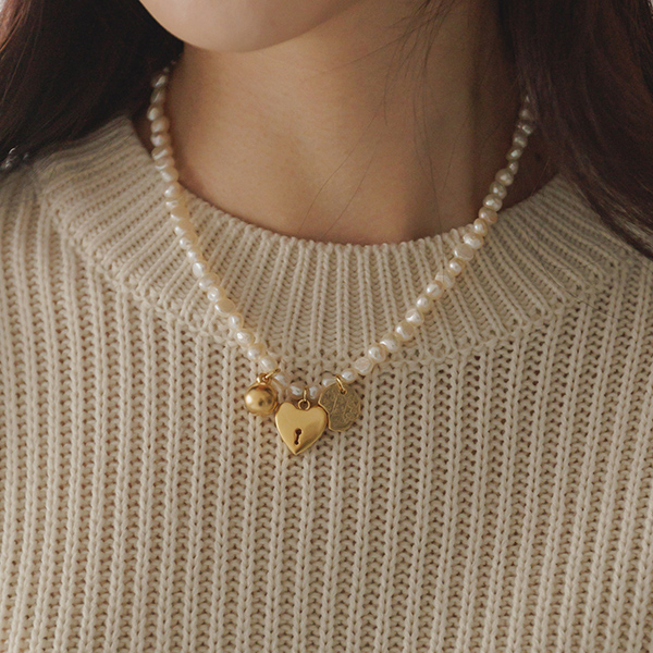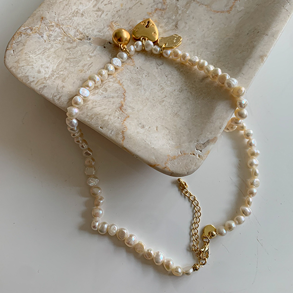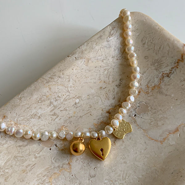 可爱 珍珠 黄金 垂饰 项链