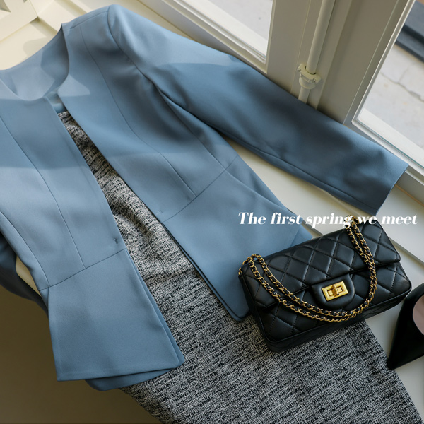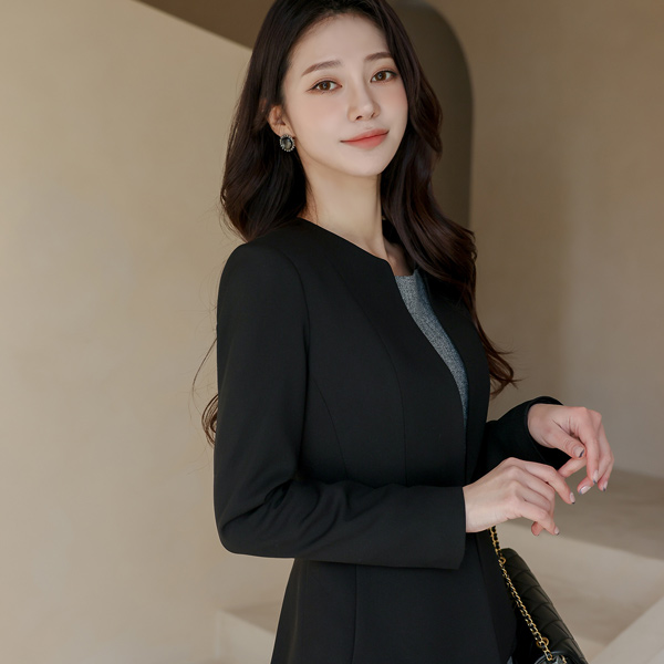 이중 페플럼 디테일의 노카라 자켓~!