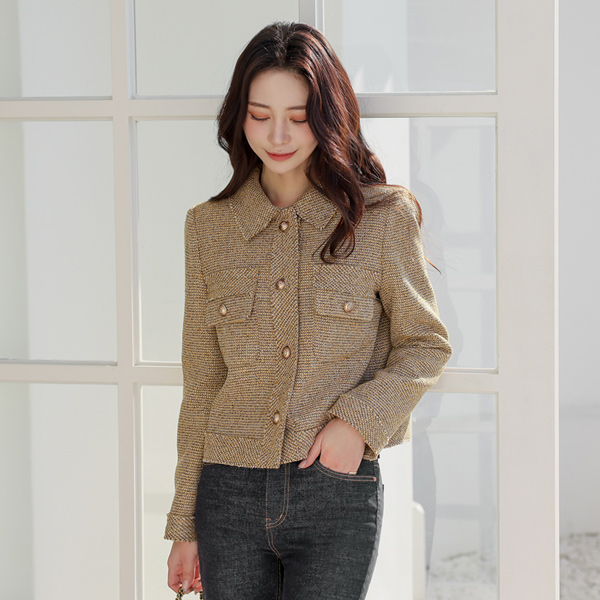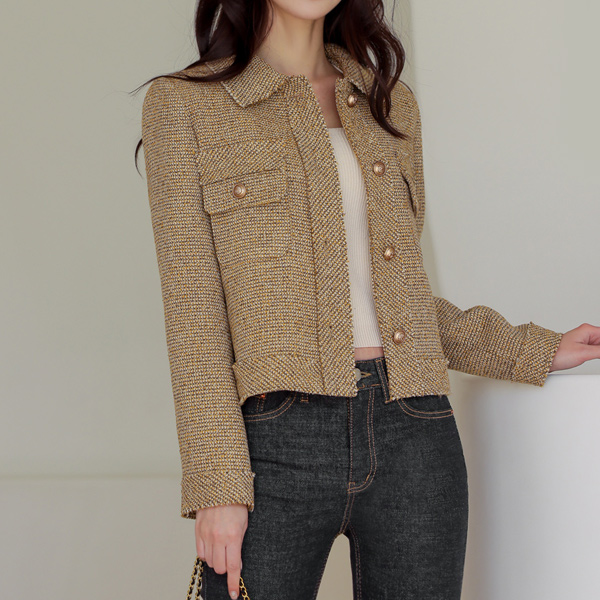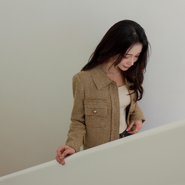 느껴지는 싱글카라넥 트위드 자켓