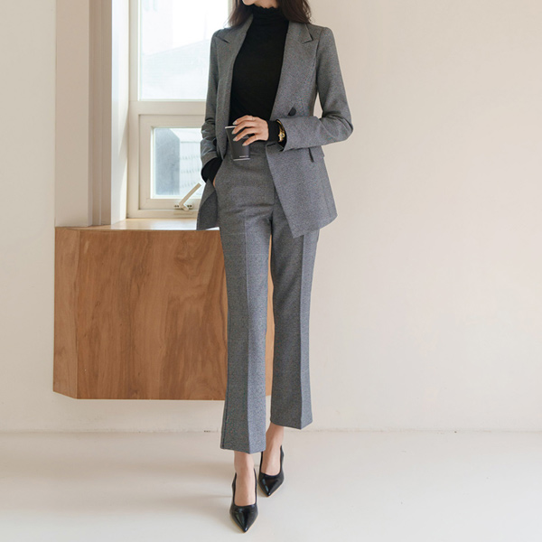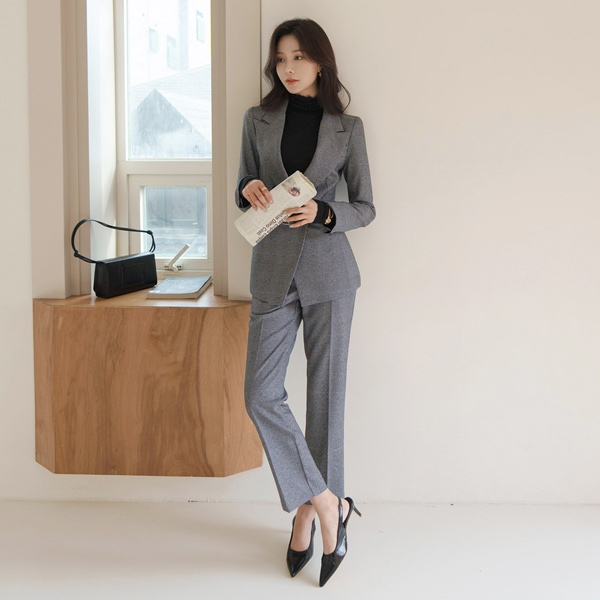 古典 格子 休闲风格 부츠컷핏 Set-up 宽松长裤