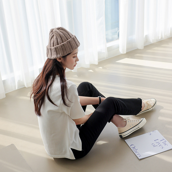 군더더기 없이 깔끔하게 떨어지는 세미 부츠컷으로