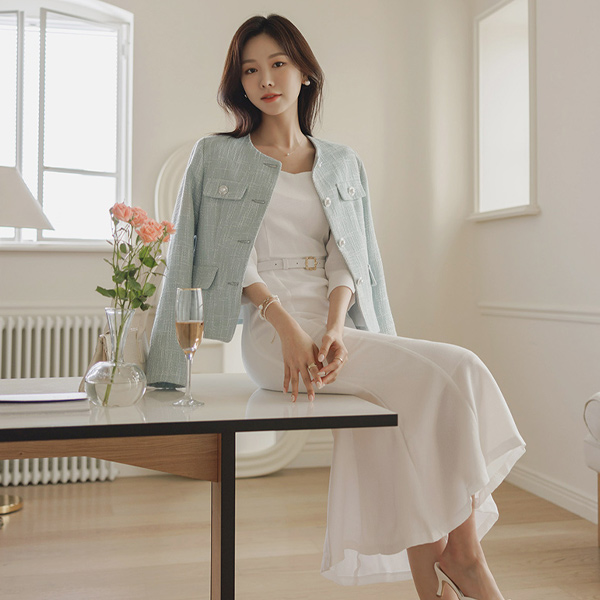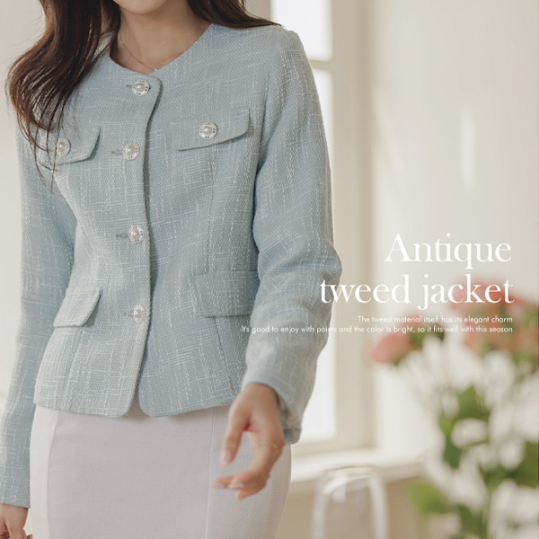 古玩 珍珠 扣子 粗呢 7分裤 夹克