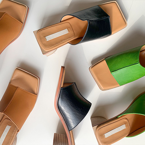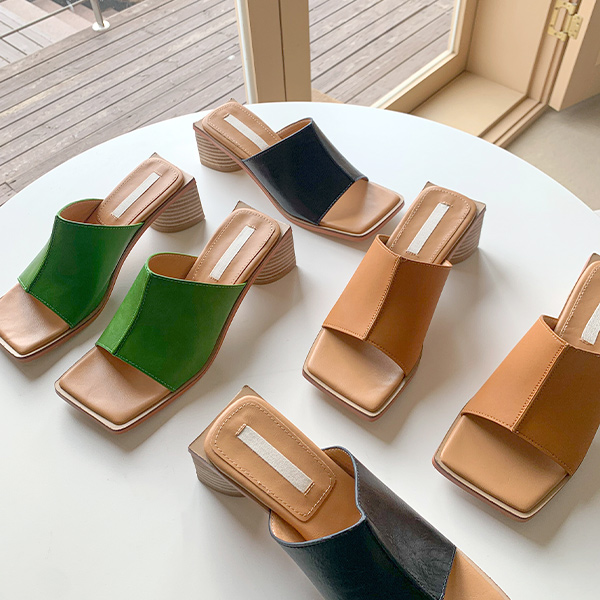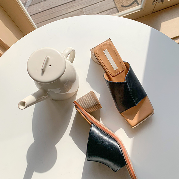 独特 方形 厚底 跟 拖鞋 高跟鞋