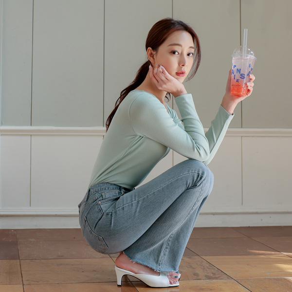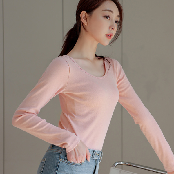 폭넓게 활용하기 좋은 코튼 U넥 티셔츠