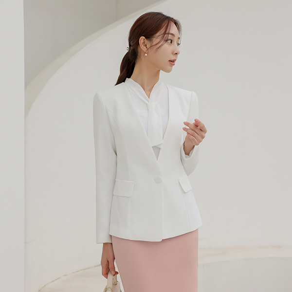 심플하게 디자인된 노카라 디자인의 자켓으로