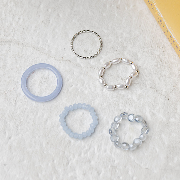 丙烯板&珠串 柔丝 戒指 (套装) (5set)