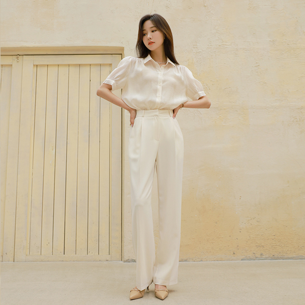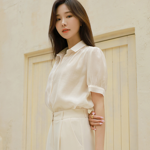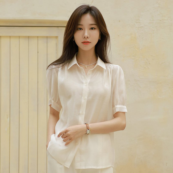 清淡/清晰 有光泽 天丝 泡泡袖 透视 罩衫
