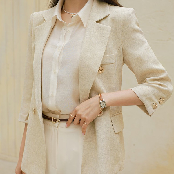 夏天 粗呢 古典 7分袖 修身 夹克