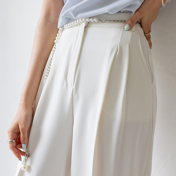 CHIC 双 细褶 柔丝 宽松 长款 宽松长裤