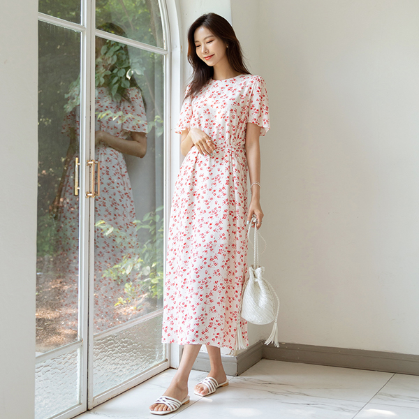 花纹 图案 郊游装 A字型 长款 连衣裙