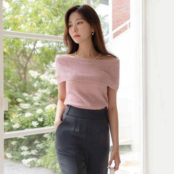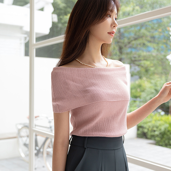女性化的 情调 修身 条绒 露肩 亚麻 针织衫