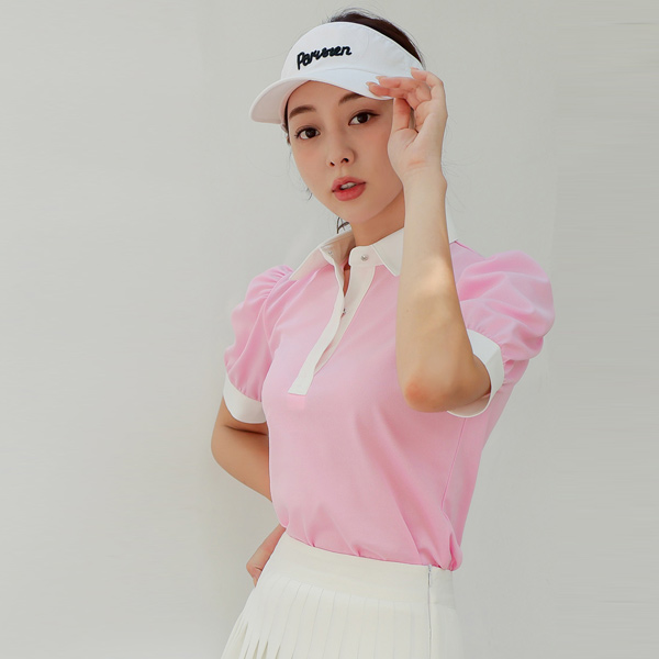 配色 领子 棉质 泡泡袖 短袖 T恤衫