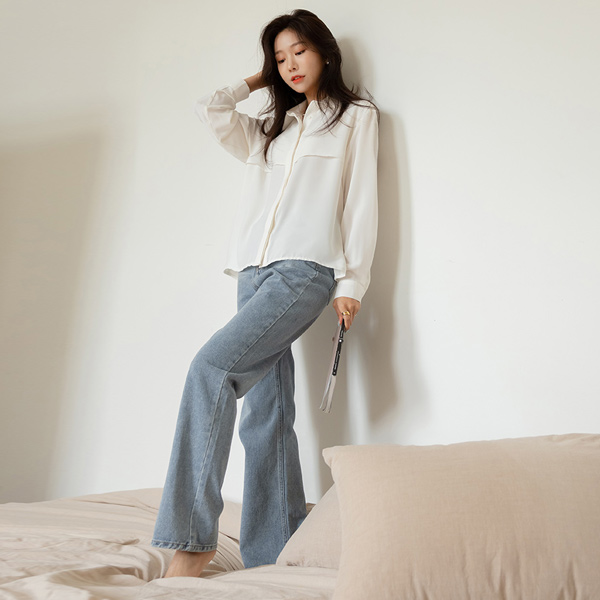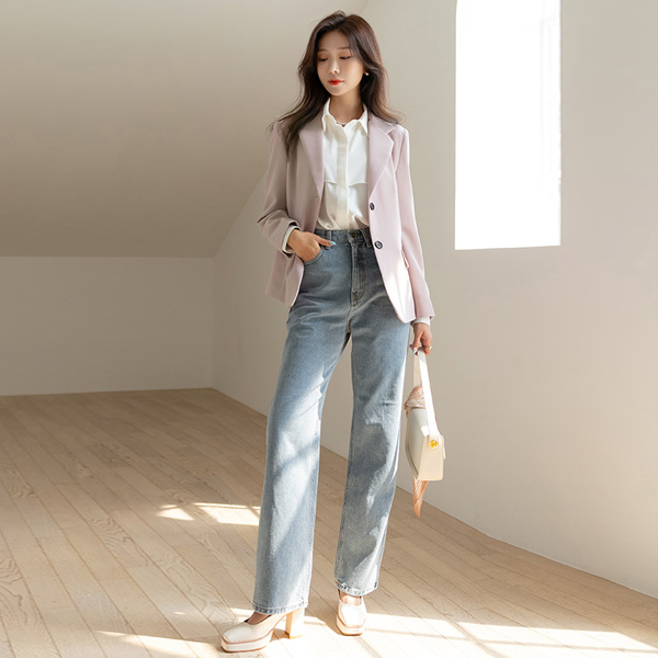 ODE 复古 情调 宽绰 牛仔色 裤子