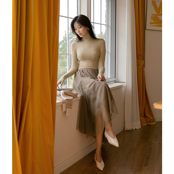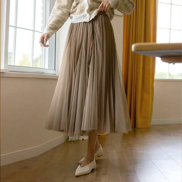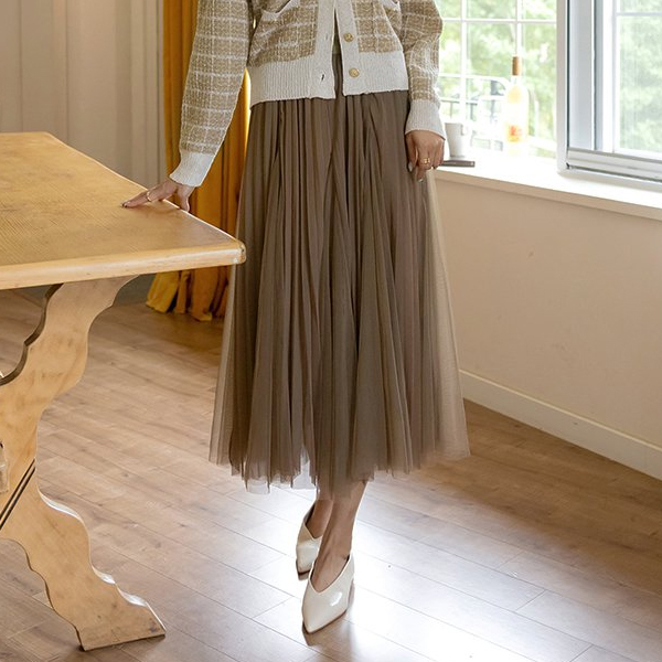 开叉 薄纱 点缀 松紧带 褶边 裙子