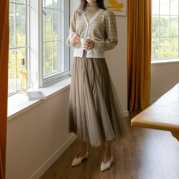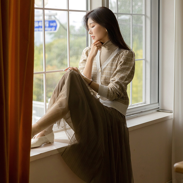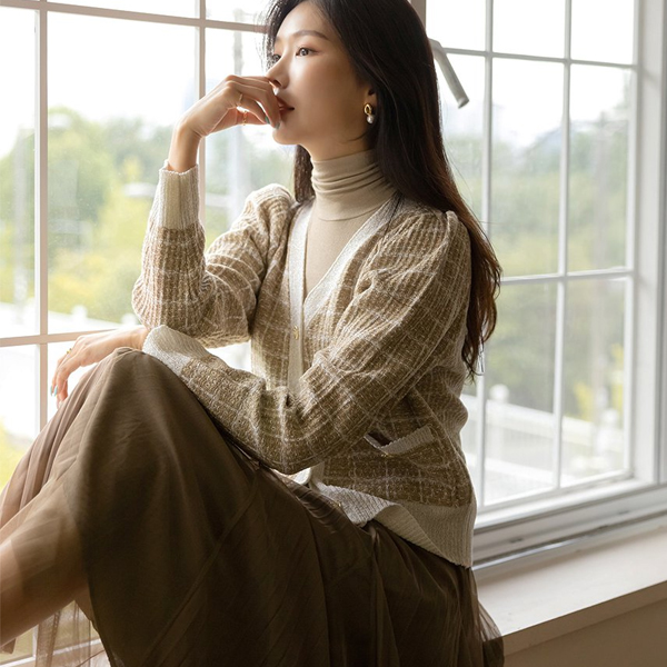 浪漫 泡泡袖 袖 珍珠 粗呢 针织衫 开衫