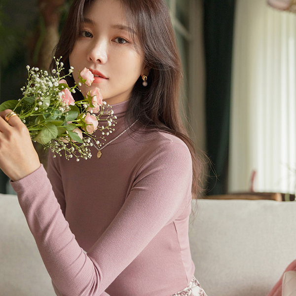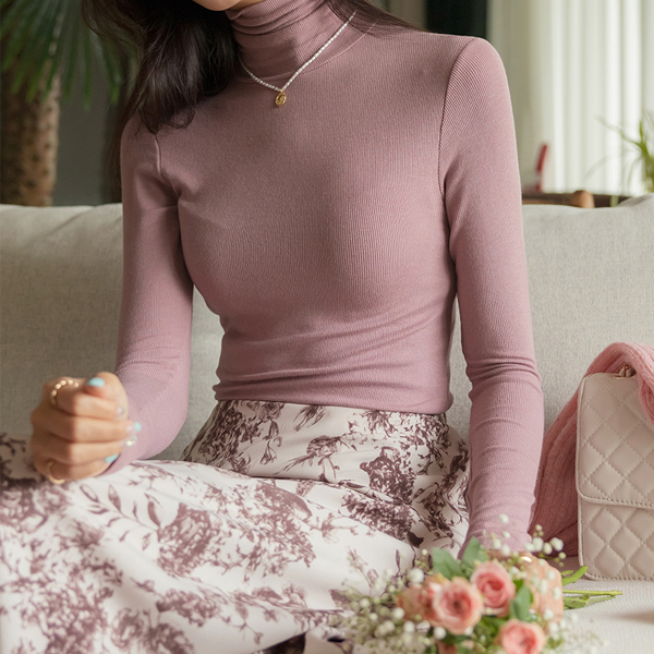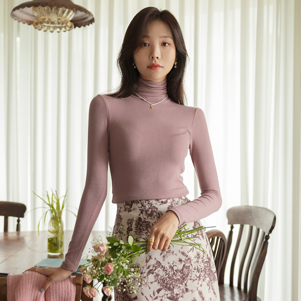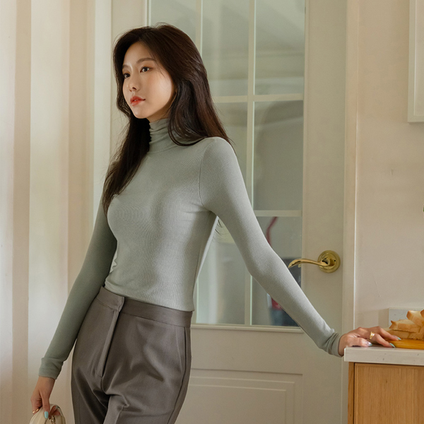 好的弹性 弹力 修身 条绒 일주일 高领T恤