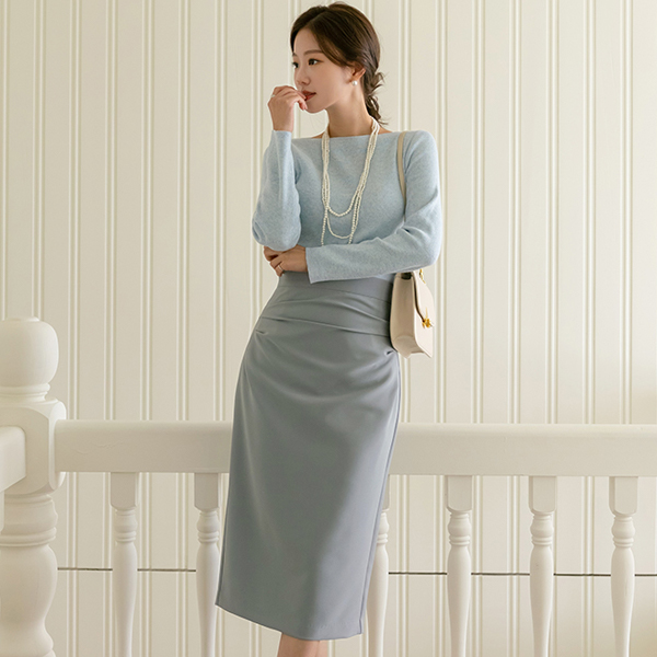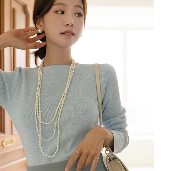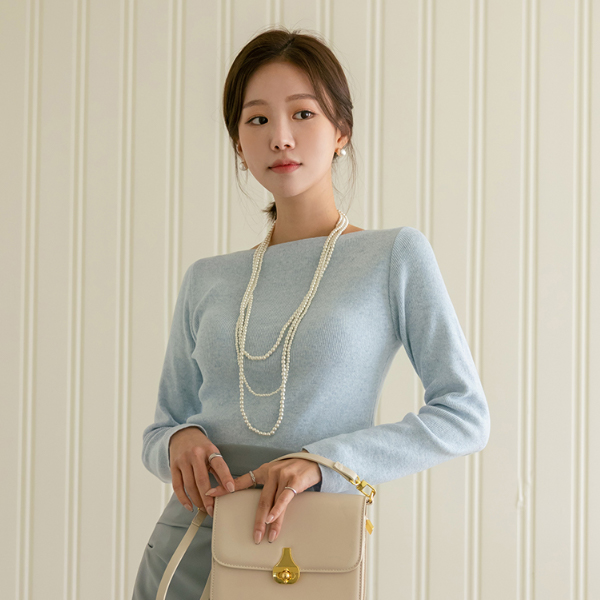 浪漫 柔色 颜色 船形领 日常 针织衫