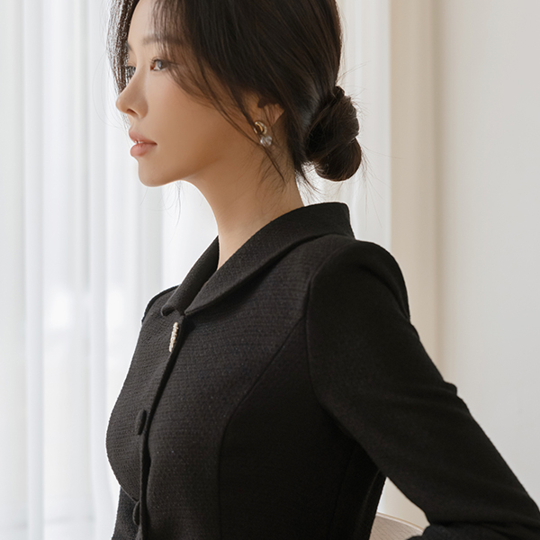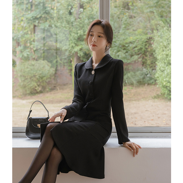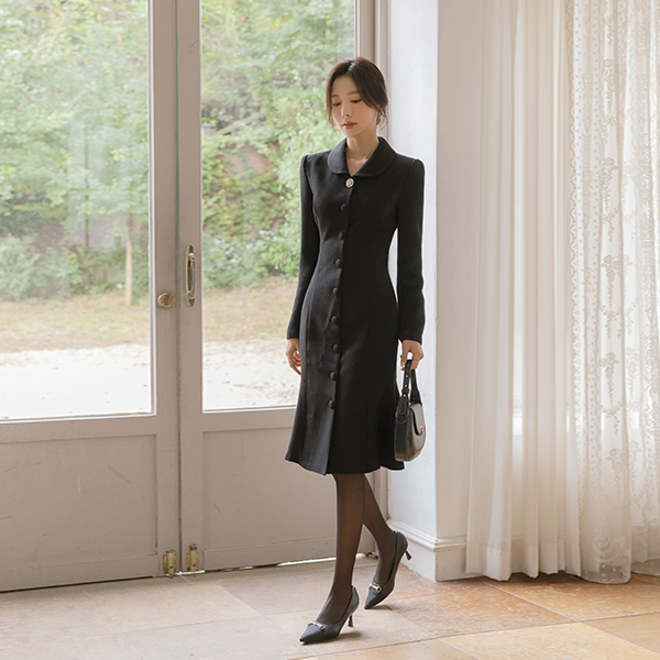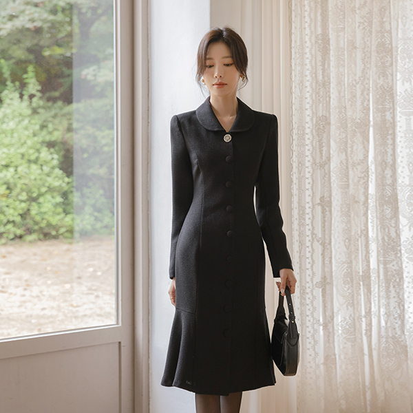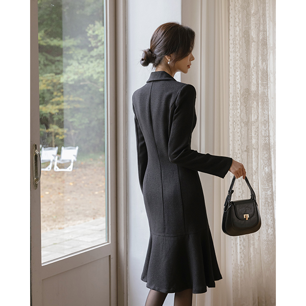 披巾领 闪亮 镶钻 扣子 美人鱼 连衣裙