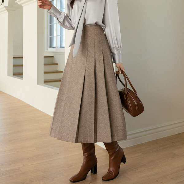 情调 인 细褶 褶边 长款 羊毛 裙子
