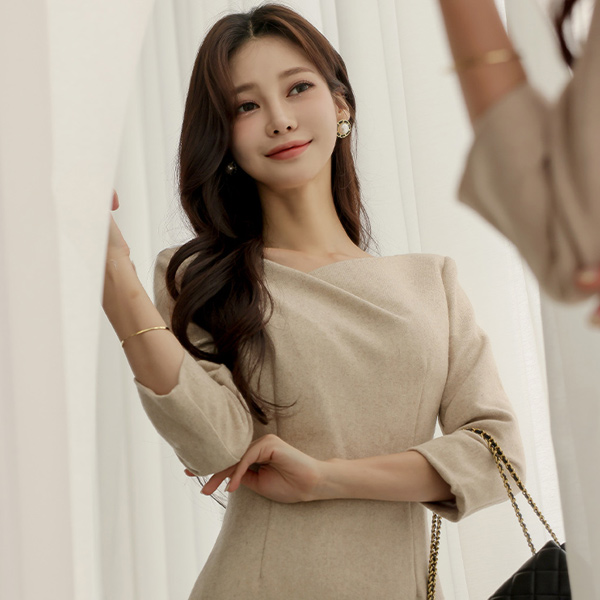 不规则领 羊毛 斯利姆 H字型 连衣裙