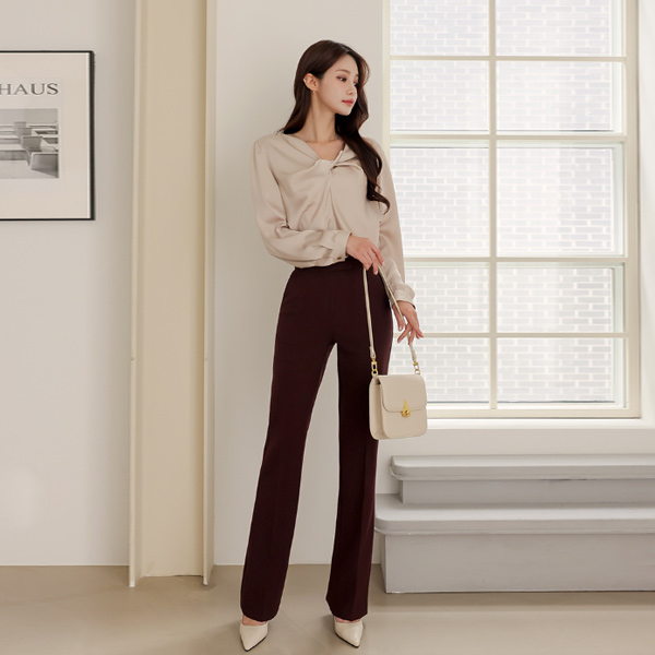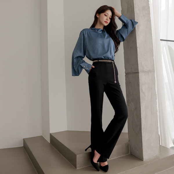 缎子 不规则 터들넥 宽松 袖口 罩衫