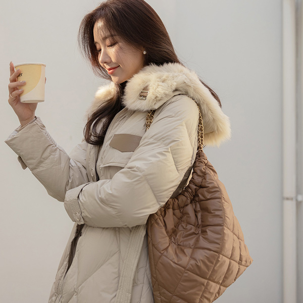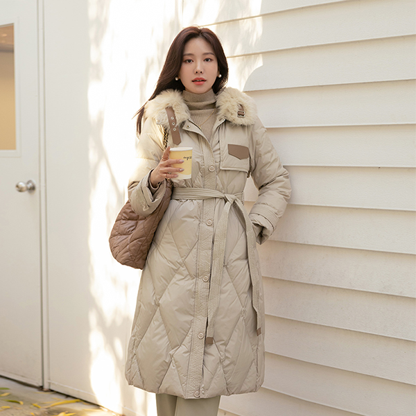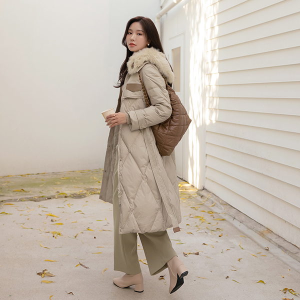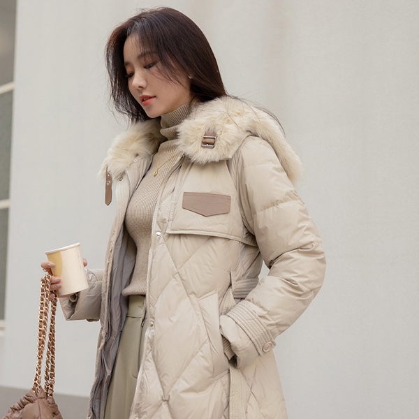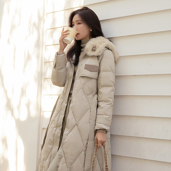 真 貉子 毛皮草 皮 补丁 鸭绒 100% 长款 羽绒服