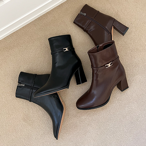 黄金 带扣 点缀 摩登 短靴