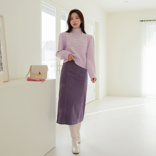 浪漫 混合 颜色 半高领 泡泡袖 针织衫