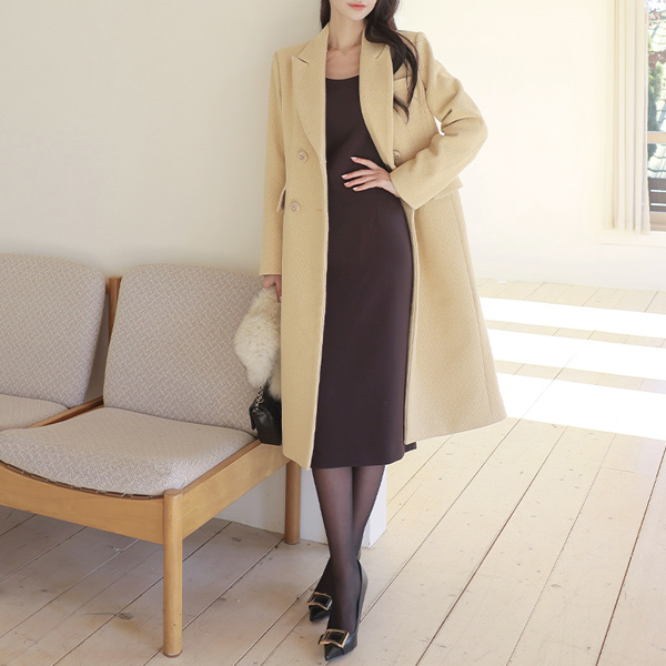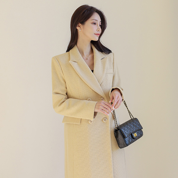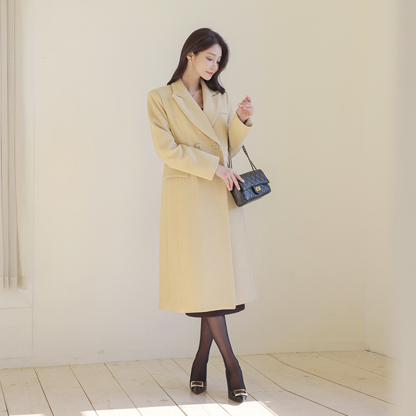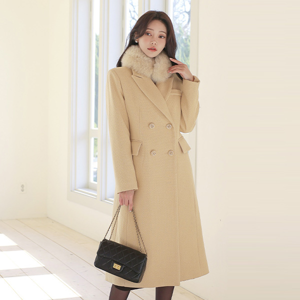 冬季 尖角 领子 双排扣 羊毛 长款 大衣 (3唡/绗缝里料)