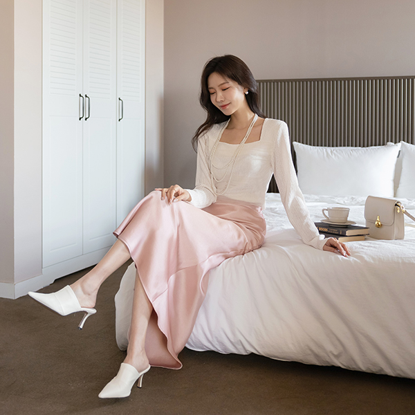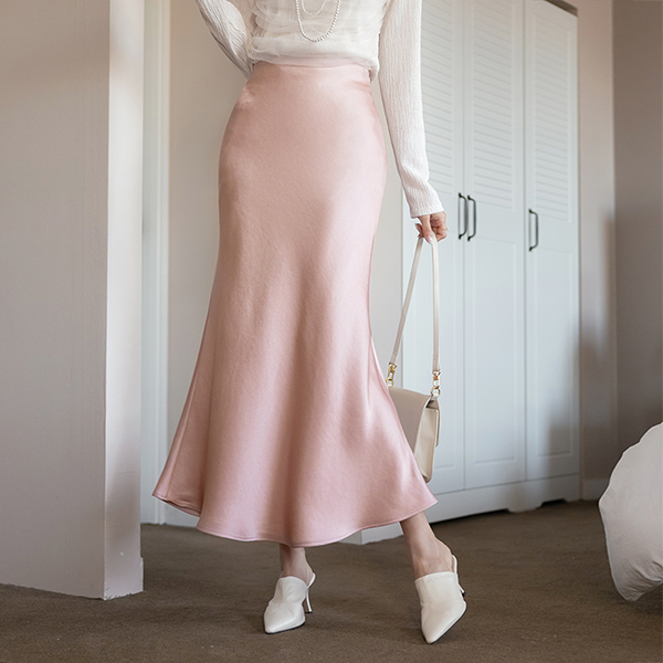 浪漫 绸缎 美人鱼 长款 后侧松紧带 裙子
