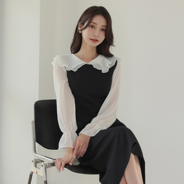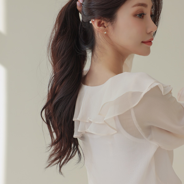 二重 荷叶 领子 松紧带 袖 透视 罩衫