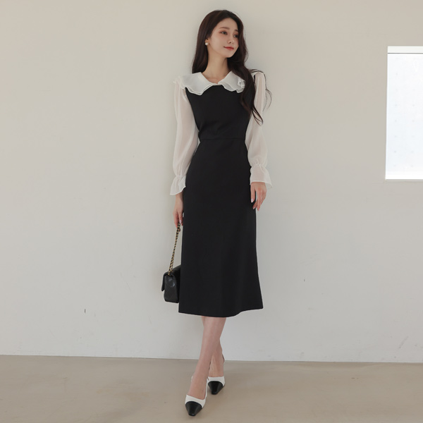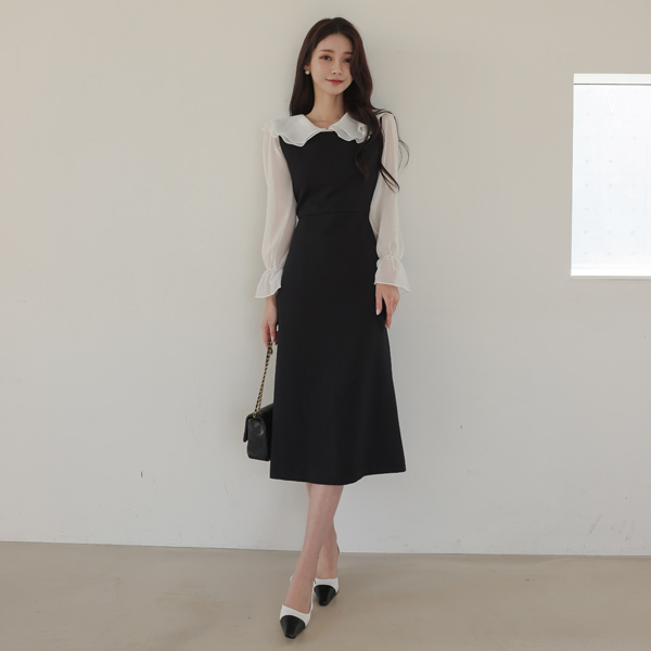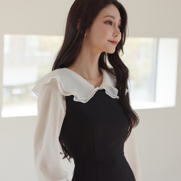 二重 荷叶 领子 松紧带 袖 透视 罩衫