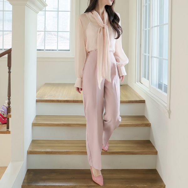 鲜明 侧纽 开叉 不规则 领带 罩衫
