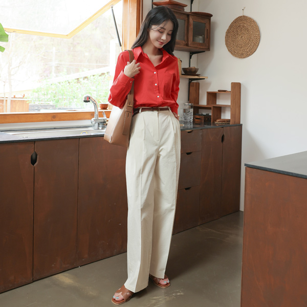 棉 双 细褶 宽松 裤子