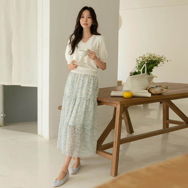 可爱 颜色 泡泡袖 V字领 棉 针织衫