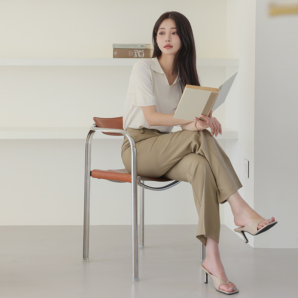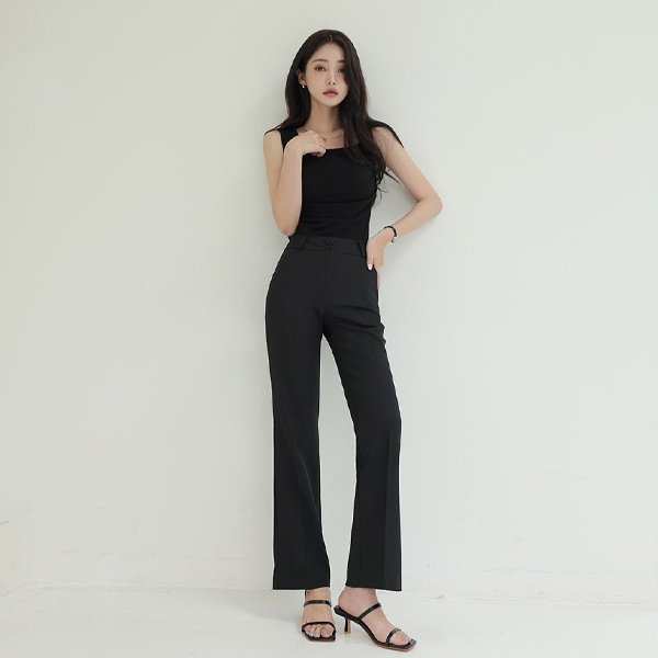方领 侧纽 褶皱 7分裤 背心