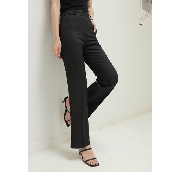 抗皱 两扣 高腰 休闲风格 喇叭 宽松长裤