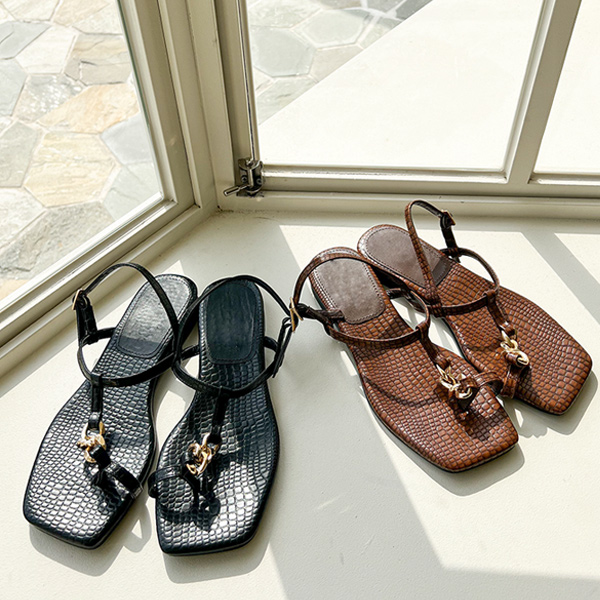 鳄鱼皮 链条 凉鞋
