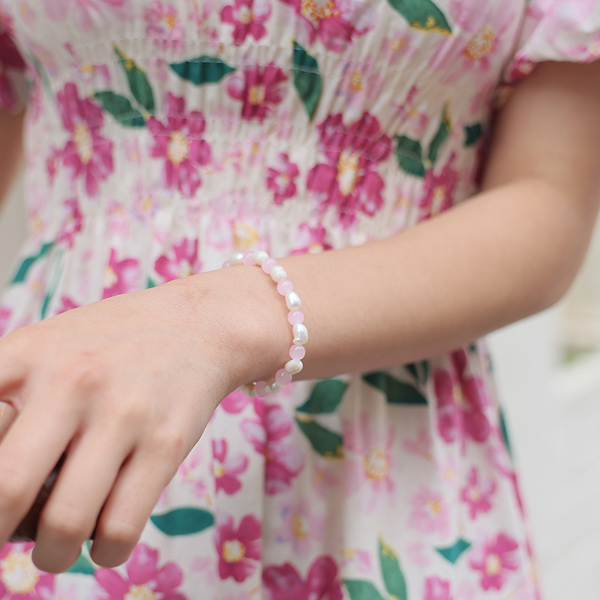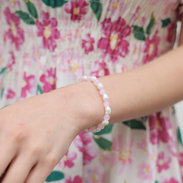 夏天 淡水珍珠 配色 原石 镯子
