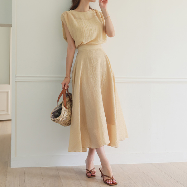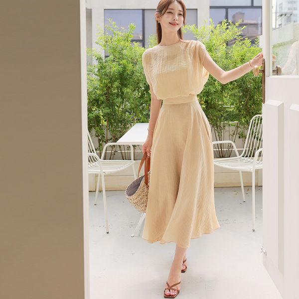 로젤 后腰松紧带 喇叭 软绵绵软的 长款 裙子